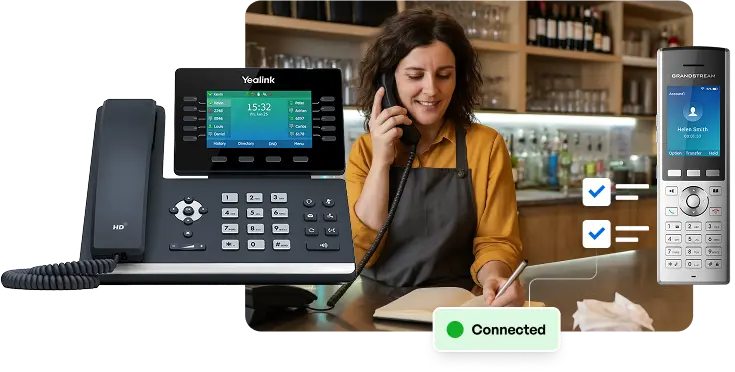 A Hosted Voice Over IP (VOIP) service. What does that mean, exactly? It’s a restaurant phone system that works just like any old landline, but it’s all done over the internet and the technical bits are stored in the cloud. It’s just like your normal business-class phone… Only cheaper, easier to use, more functional, and backed by our amazing support team. So, actually… It’s nothing like your old system.